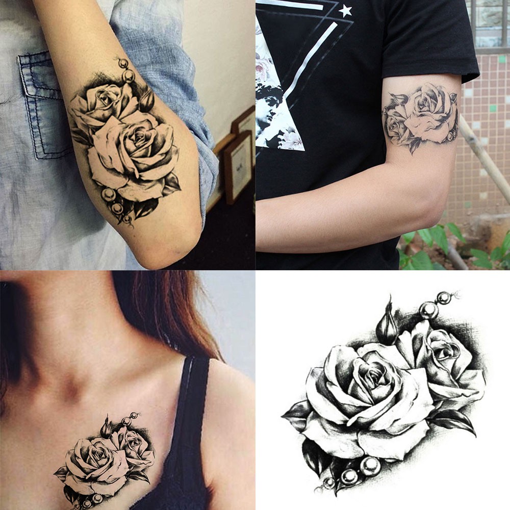 Topl stiker tato temporer anti air motif bunga mawar.